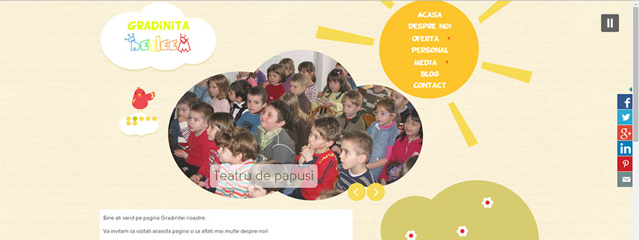 In 15 Septembrie, odata cu inceperea anului scolar 2014-2015, Gradinita cu Program Normal “Betleem” Hateg, fondata si sustinuta de Biserica omonima, si-a deschis portile pentru copiii care sunt inscrisi aici. Odata cu acest nou inceput, a fost lansat si saitul de internet al gradinitei noastre, intr-un format nou.